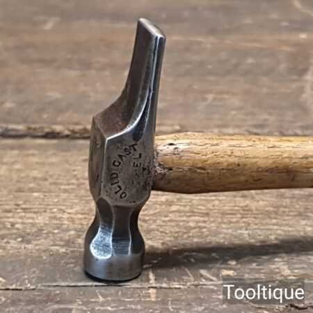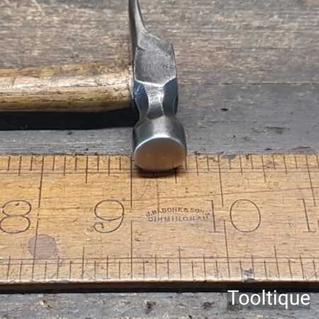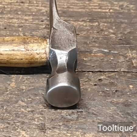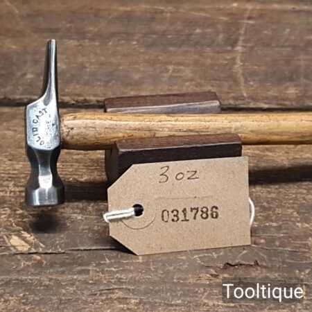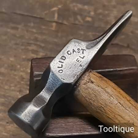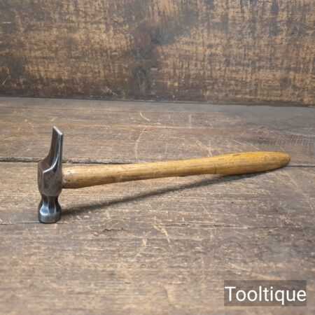 Small vintage British Cast Steel cross pein riveting hammer with an Ashwood handle, refurbished ready for use and in good used condition. Note: Good quality steel head which fits tightly to the handle. Total weight including handle is approx 3 Ounces.