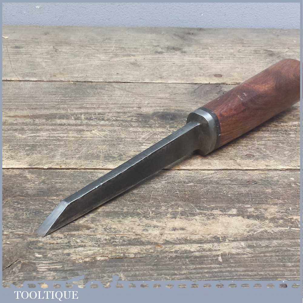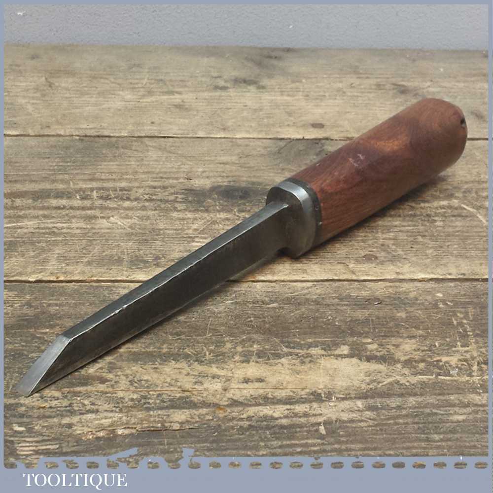 Special Vintage Moulson Bros of Sheffield 5/16” wide Mortice chisel and has been upgraded with the addition of a dense handmade hardwood handle with a beautiful grain. It also has good length to the tang measuring 5 ¾” from tip to the handle. The chisel has been has been sharpened and honed ready for use.