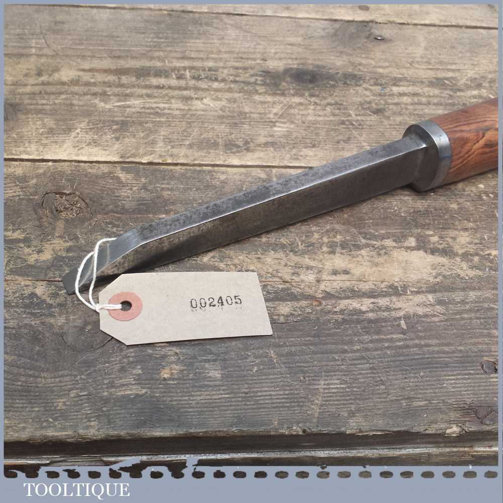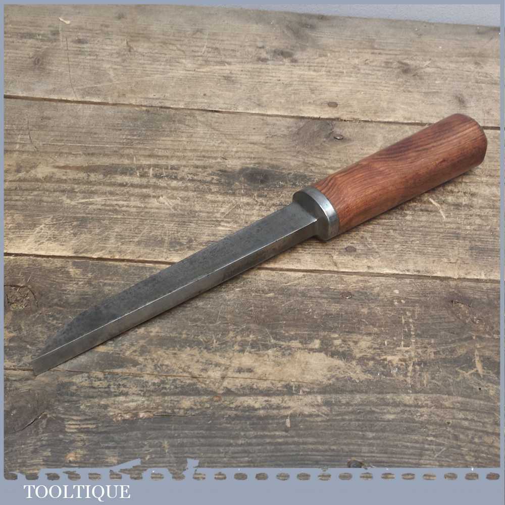 Special Vintage William Outram & Son of Sheffield 7/8” wide Mortice chisel and has been upgraded with the addition of a dense handmade hardwood handle with a beautiful grain. It also has good length to the tang measuring 7 ¼” from tip to the handle. The Chisel has been has been sharpened and honed ready for use.