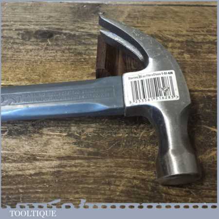 Stanley 20 oz cast steel claw hammer with fibreglass handle, in good used condition.
