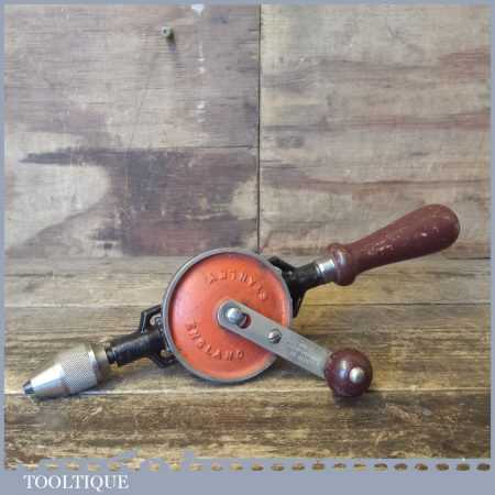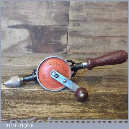 Vintage Stanley No: 803 egg beater double pinion hand drill with keyless chuck refurbished ready for use and in good used condition.