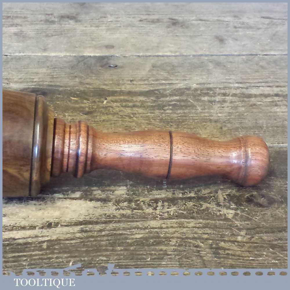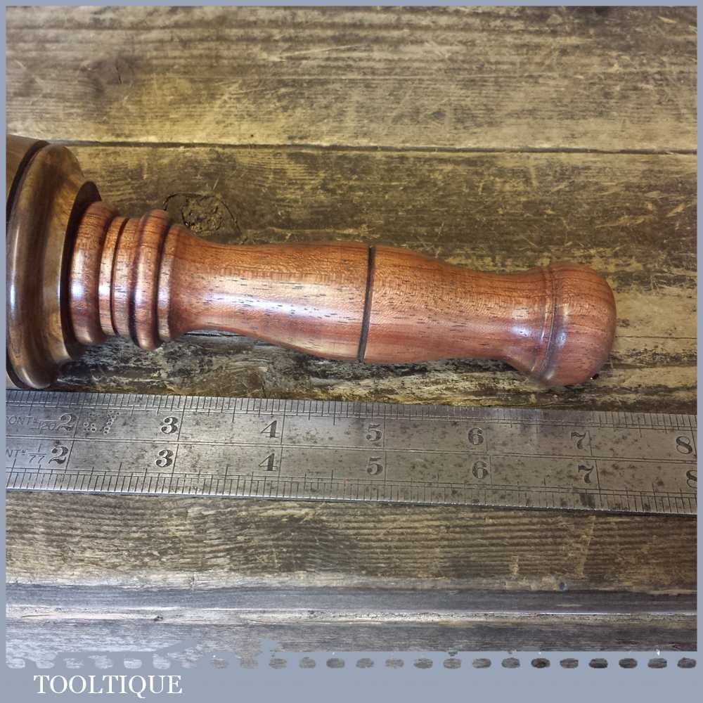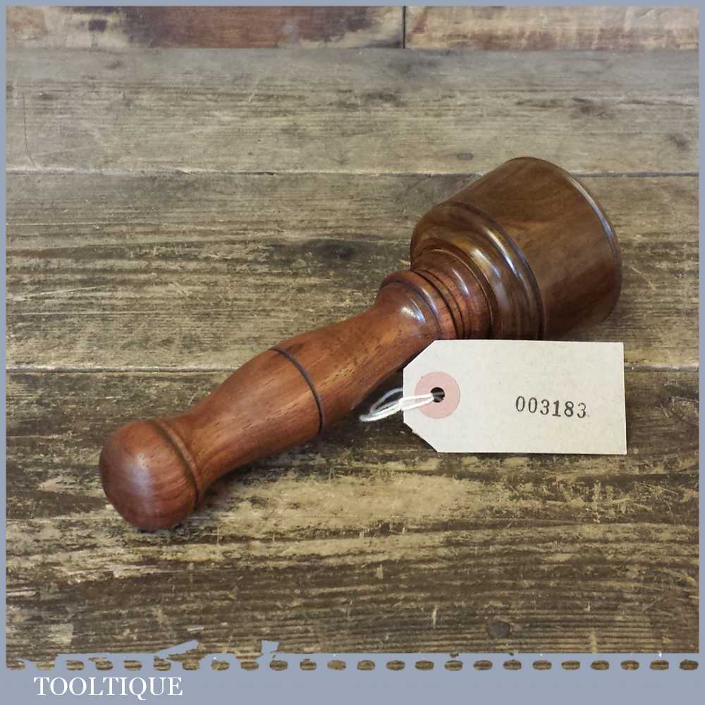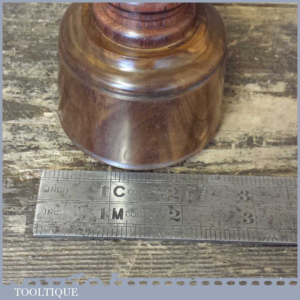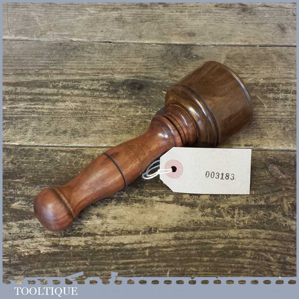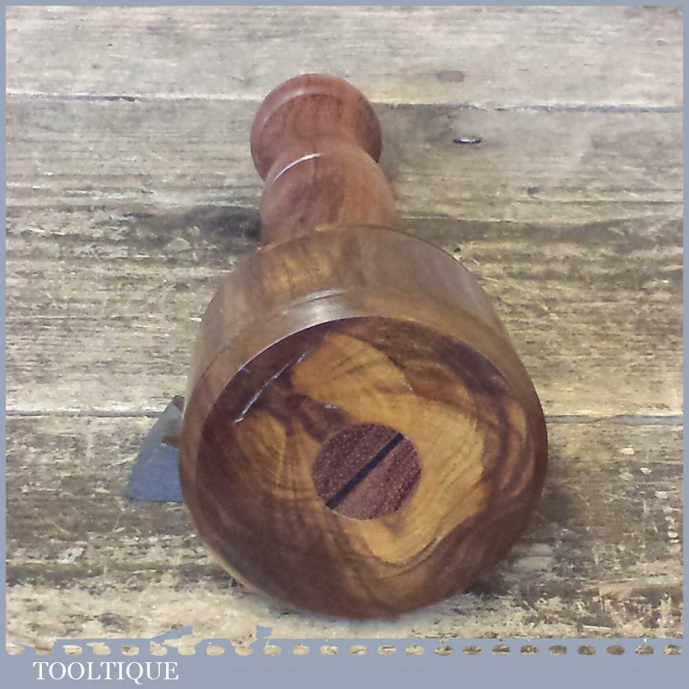 This is a superb small Lignum Woodcarving mallet measuring approx 2 ½” across the top of the of the head graduating down in size. The mallet has a Mahogany handle and has been finished with an ebony wedge and finished with a wax finish. The Lignum head is made from an old seasoned bowl which ensures you are getting a mallet that is durable and will last many years ahead if treated correctly. This smaller size is perfect when a more delicate controlled tap on the chisel is required.