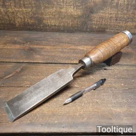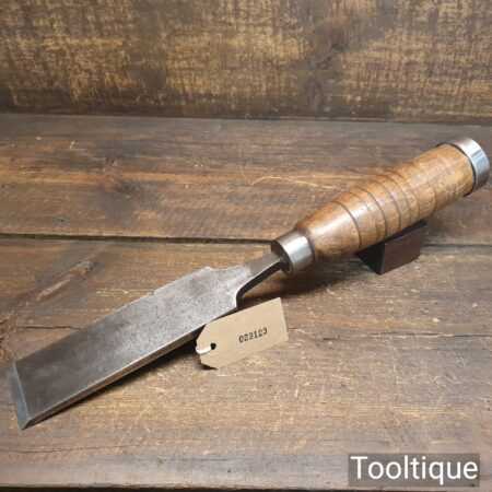 The chisel has been checked to ensure the tang is seated properly and the handle is solid and fit for use. All refurbished chisels are water cooled during the sharpening & flattening process to ensure the tempering is not affected.
