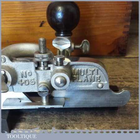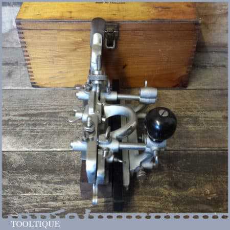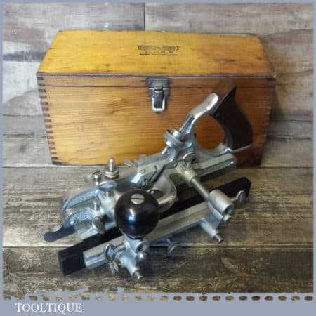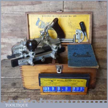 Superb Vintage boxed Record No: 405 combination plough plane complete with 22 cutters, fully refurbished and ready for use. The plane is in excellent condition and all components move smoothly and this plane has rosewood handles. Note: We do not sharpen the irons.