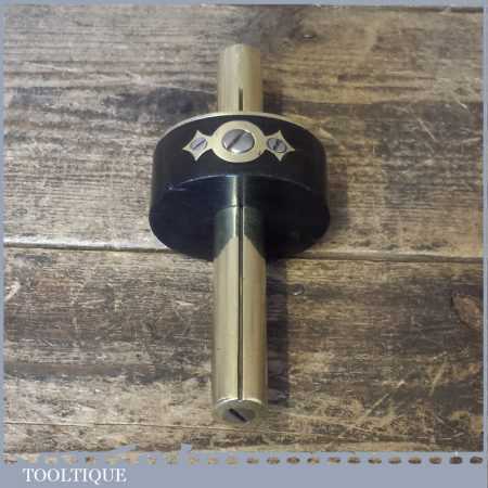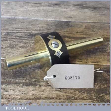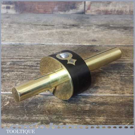 Superb Vintage Brass stemmed Ebony mortise gauge with screw adjuster, good pins and its internal brass groove guide. The adjuster works smoothly and this is a very nice example.