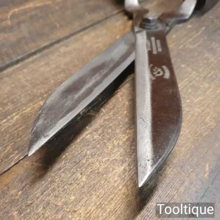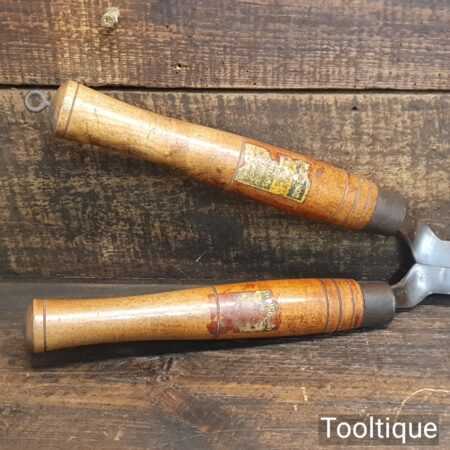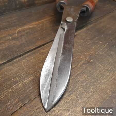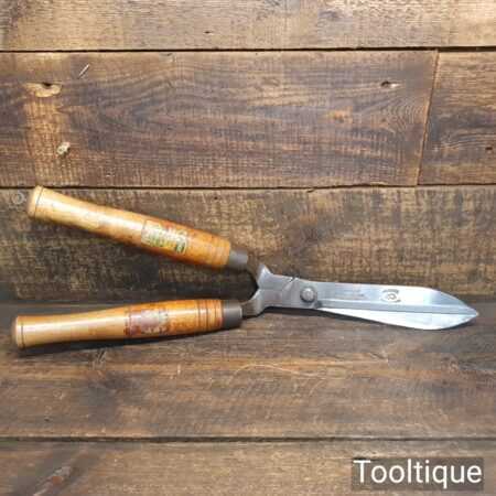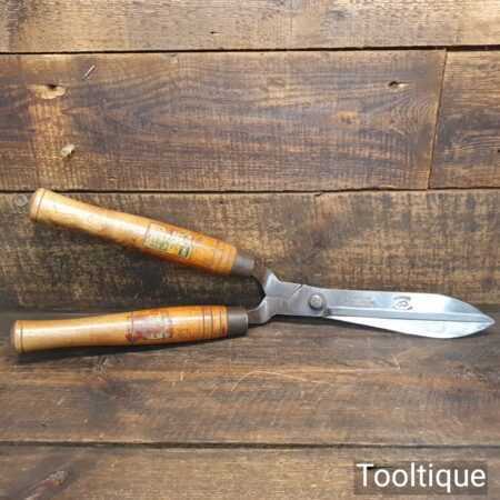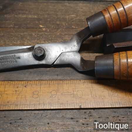 Superb vintage Cornelius Whitehouse & Sons “Hedgehog” brand cast steel garden shears with beechwood handles in good used condition, fully refurbished sharpened and honed ready for use. Note: These have been properly sharpened where they will slice rather than hack and will cut paper like scissors.