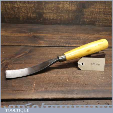 Superior vintage J. B. Addis & Sons 1 1/32” curved wood carving gouge chisel with boxwood handle in good used condition, fully refurbished sharpened and honed ready for use.
