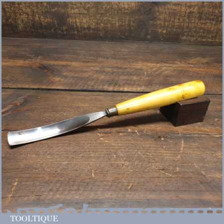 Superior vintage J. B. Addis & Sons 5/8” curved wood carving gouge chisel with boxwood handle in good used condition, fully refurbished sharpened and honed ready for use.