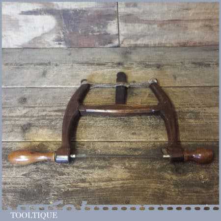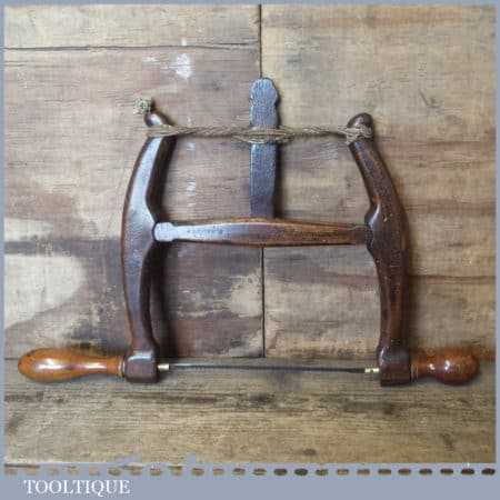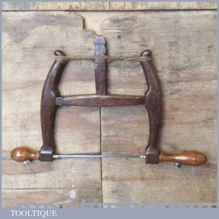 Sweet little antique craftsman made wooden bow saw with a 7” blade in good used condition. The saw is still strong and tightens properly and is still usable