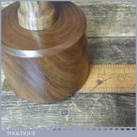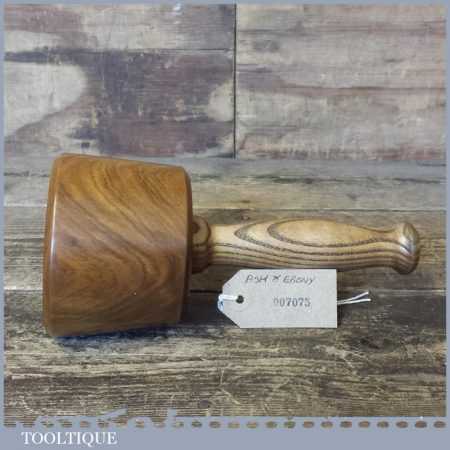 These have been polished so they have an extremely smooth finish and polished with bees wax. These are made with a one piece handle which continues through to the opposite end of the mallet head. These feel very good in the hand and have some good weight to them approx 2 lbs. These are made from old lignum crown bowls which ensures they are well seasoned but more importantly comes from the region where the densest lignum could be found before being exhausted. The lesser dense Argentinean lignum took over the market after that and again this is all but gone as it takes so long to grow.