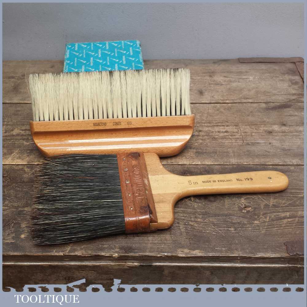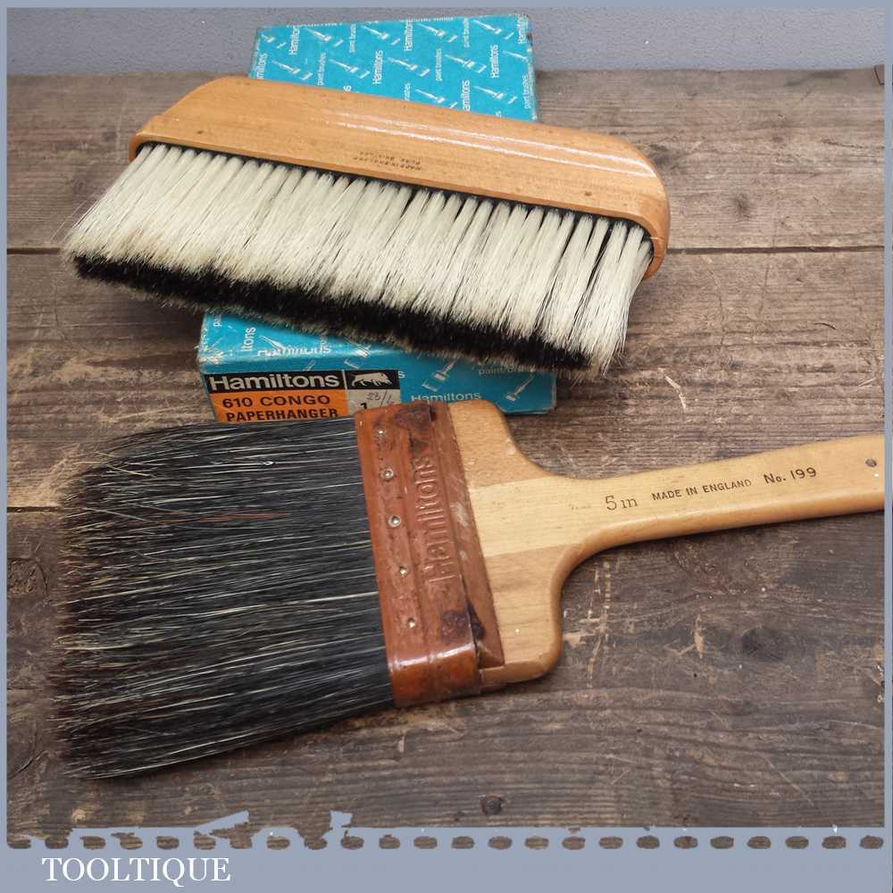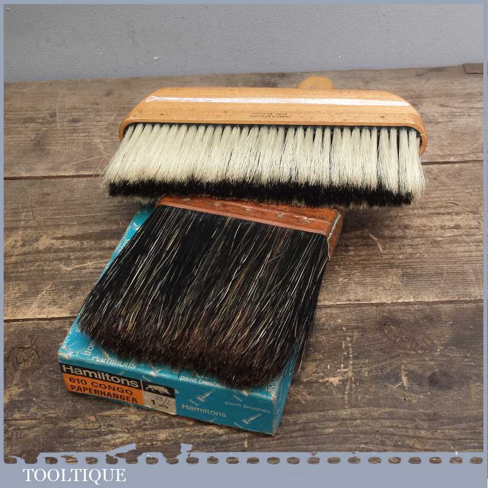 Two Hamilton’s Natural Bristle wallpaper brushes in good lightly used condition. One brush for hanging the paper and the other to paste the walls.