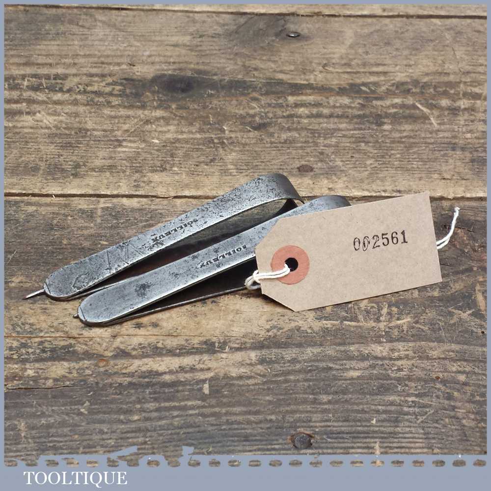 Two rare basket weavers’ clippers with picks possibly used for a specific material thus why they are pretty hard to find. Marked Soileux a maker I cannot find adds even more mystery. One is in good condition and one pick has been either worn off or broken.