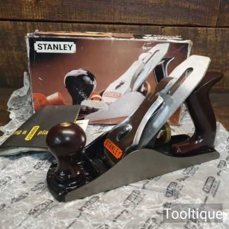 Unused Vintage Stanley England No: 4 smoothing plane in good used condition. Note: This plane is approx 40 years old with plastic handles but shouldn’t be confused with modern Stanley planes.