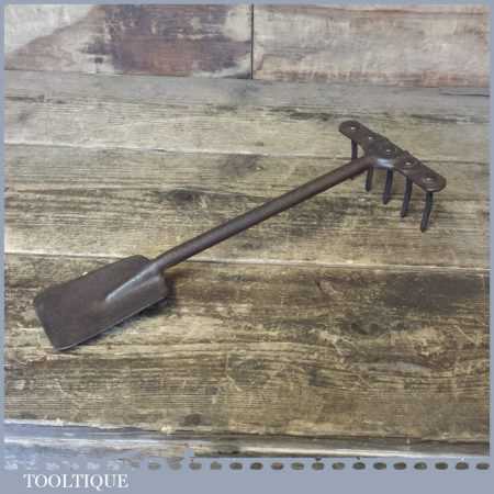 Unusual 11” vintage Mid Century gardener’s combination hand rake and spade in good used condition. It’s an interesting tool that obviously didn’t catch on due to their rarity.