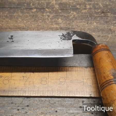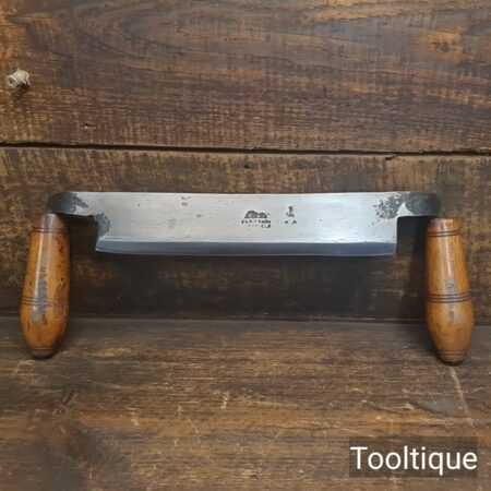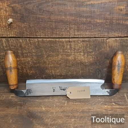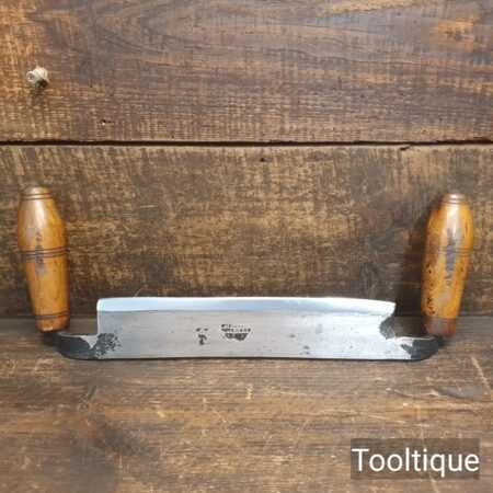 Unusual 9 ½” vintage Bury’s & Co. of Sheffield drop handled drawknife, fully refurbished ready for use and in good used condition. Note: Tight fitting handles and sharp.