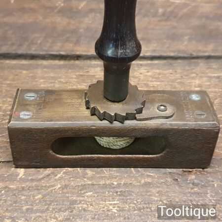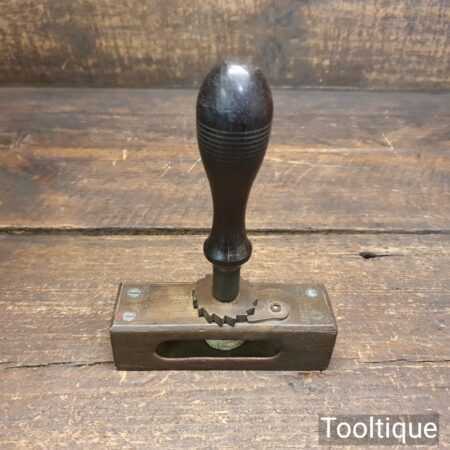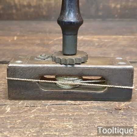 Unusual antique brass winch type string clamp with rosewood handle in good used condition.