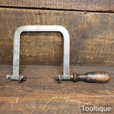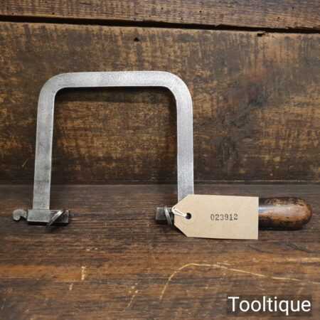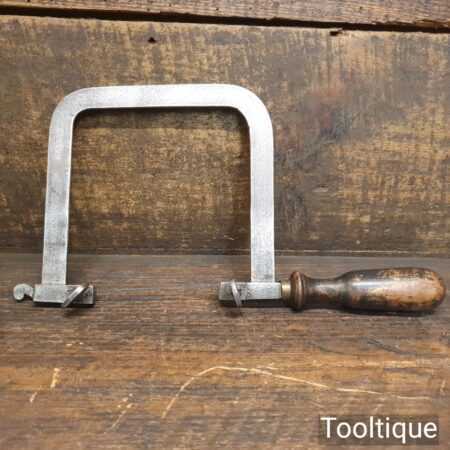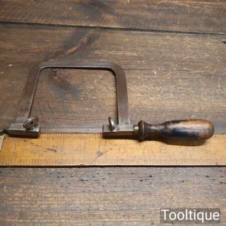 Unusual antique jeweller’s rigid piercing saw with a beechwood ebonised handle in good used condition.