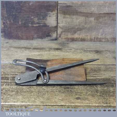 Unusual antique leatherworking 6 ½” square leg cast steel wing dividers in good used condition. Almost certainly handmade by a blacksmith.