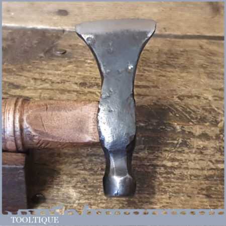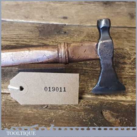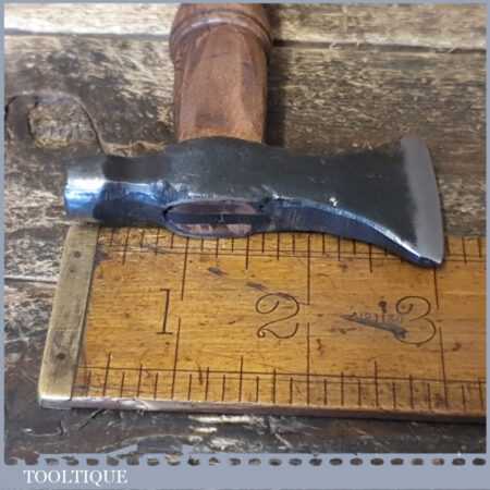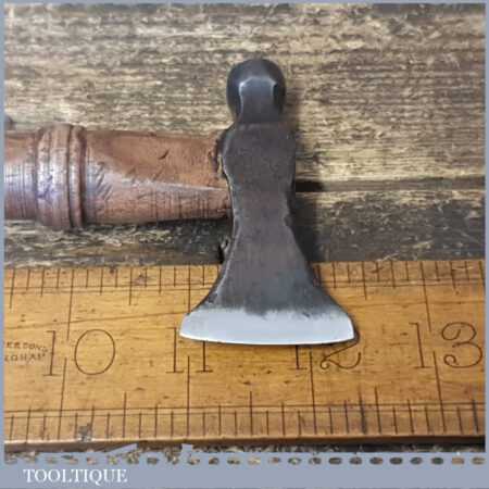 Most unusual antique miniature hammer & hatchet with decorative fruitwood handle in good used condition. Feels finely balanced and very nice in the hand but can only assume that its purpose was for sugar related in the catering trade