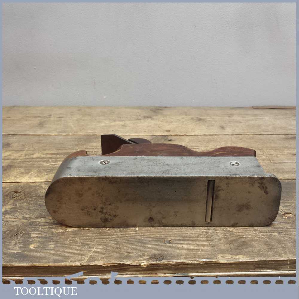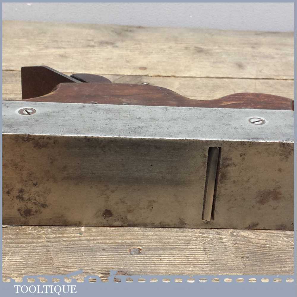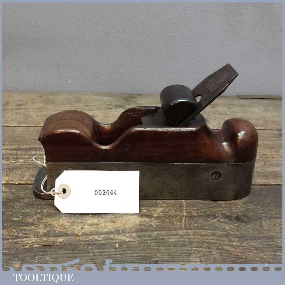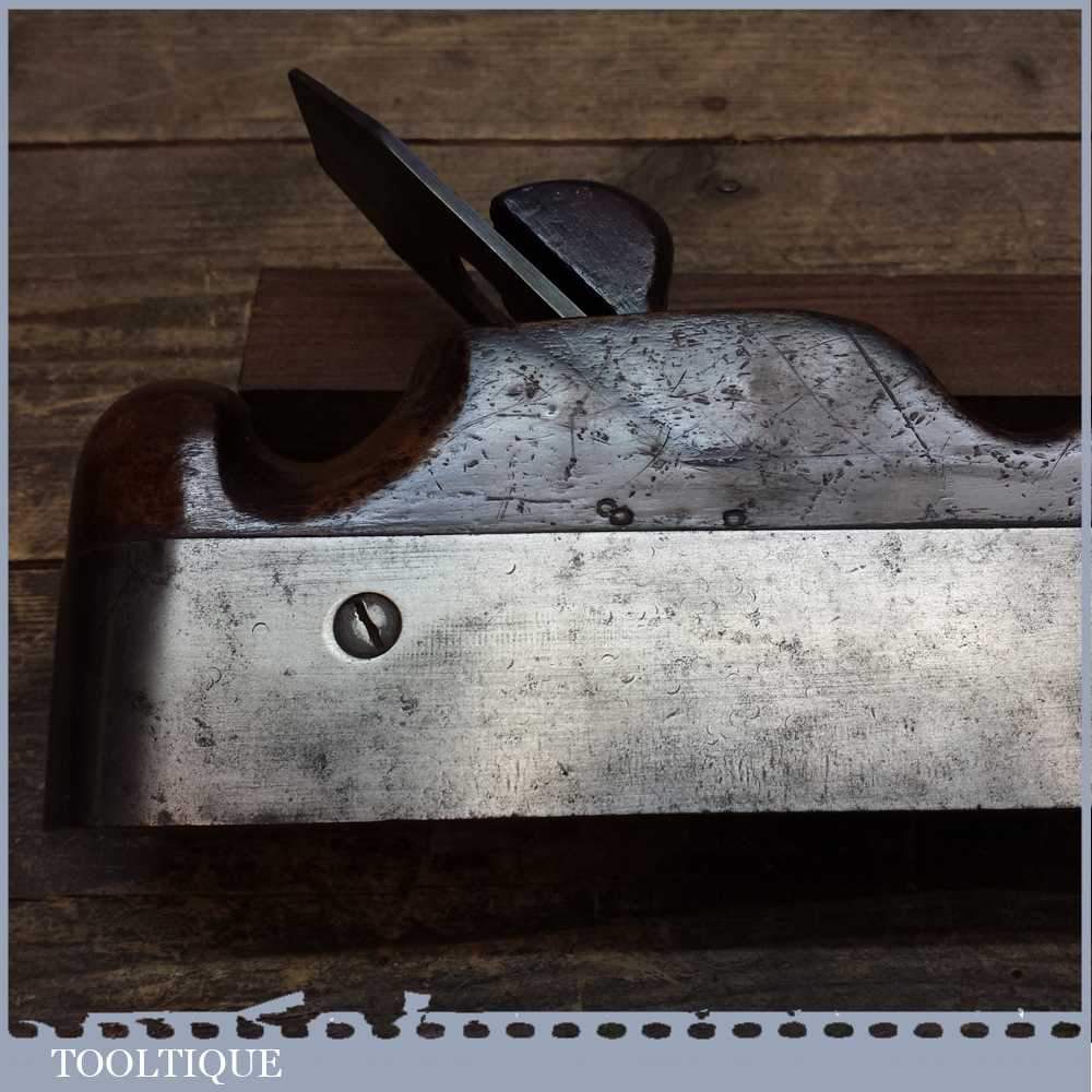 Unusual and early Antique Iron infill smoothing / Mitre plane with possibly could be a walnut infill although it is hard to distinguish due to its age. Possibly early 19th century given metal planes had established set styles as the century went on. It has probably had a replacement iron in its time but a very interesting plane. In good overall condition although there is a minor crack in the heel where it has been hit several times. Sold as collectable only.