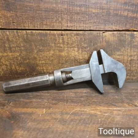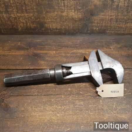 Unusual vintage 13” double jawed monkey wrench with screw adjuster handle, in good used condition.