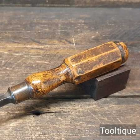 The chisel has been checked to ensure the tang is seated properly and the handle is solid and fit for use. All refurbished chisels are water cooled during the sharpening & flattening process to ensure the tempering is not affected.