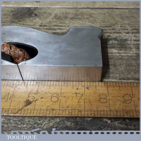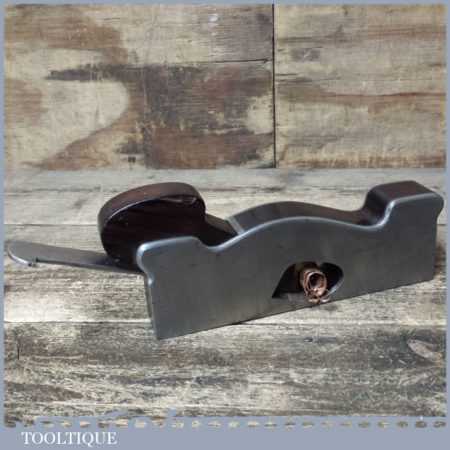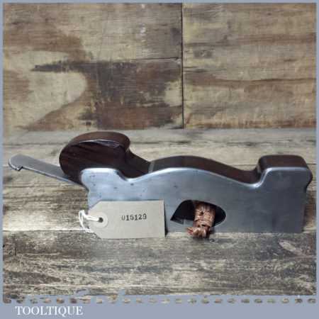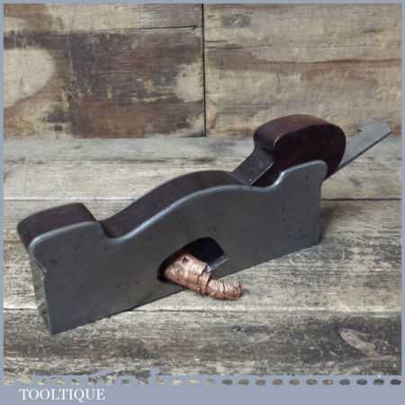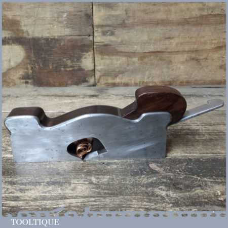 Unusual vintage Alex Mathieson & Son dovetailed shoulder plane with rosewood infill and wedge, in good used condition. This is unusual as the known Mathieson font for the ‘STEEL’ stamp is forward slanting but there are questions whether Norris also made planes for Mathieson and the ‘STEEL’ Stamp is much like the Norris stamp. The style of plane suggests its also an early model No: 7 Norris.