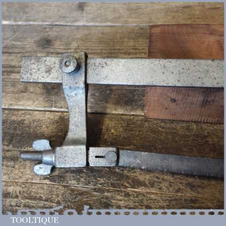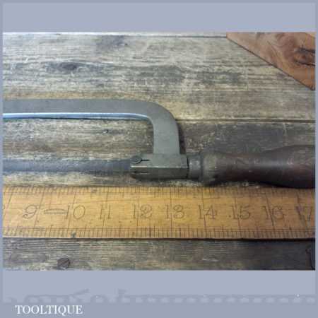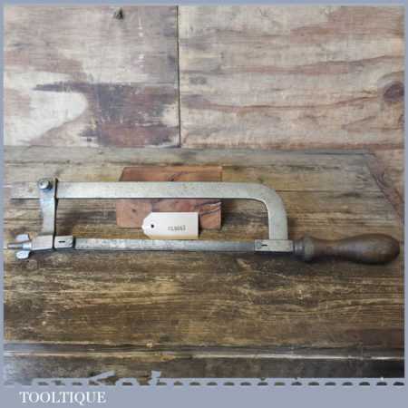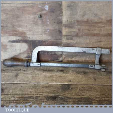 Unusual vintage cast steel framed hacksaw with adjustable arm in good used condition.