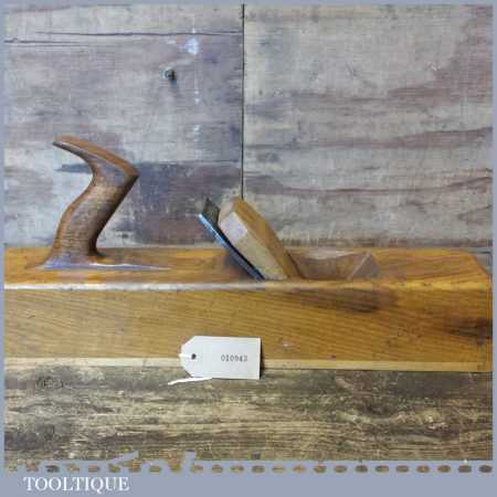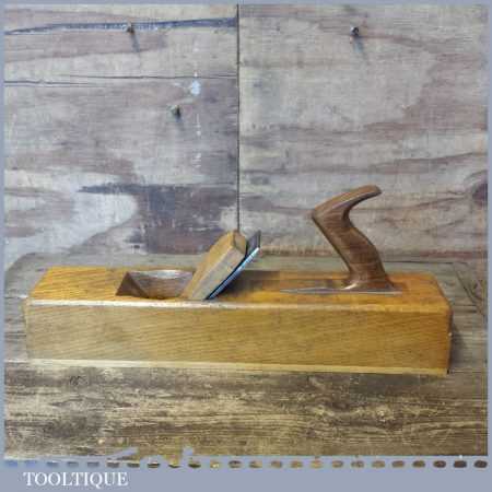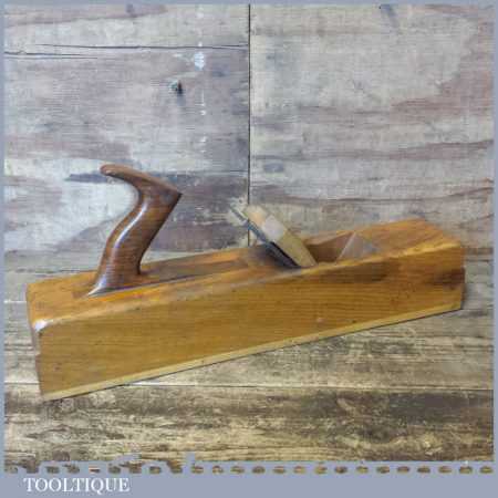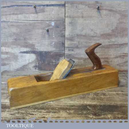 Unusual vintage craftsman made oak 18” jack plane with in good used condition. Lapped flat and sharpened ready for use.