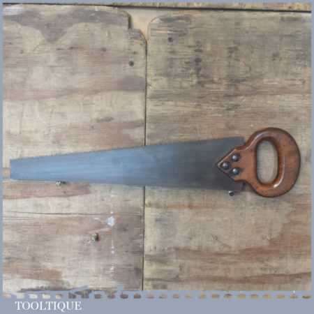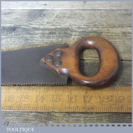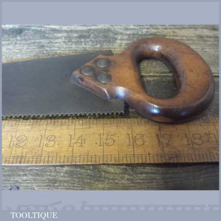 Unusual vintage double-edged hand saw with beechwood handle, fully refurbished and sharpened ready for use. This as you can appreciate has two edges to sharpen and set so did take some work to get this sharp.