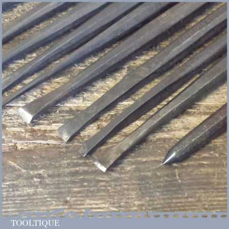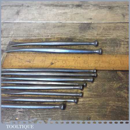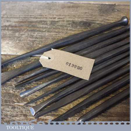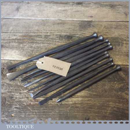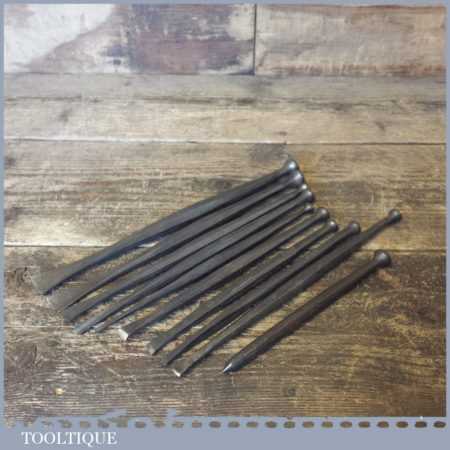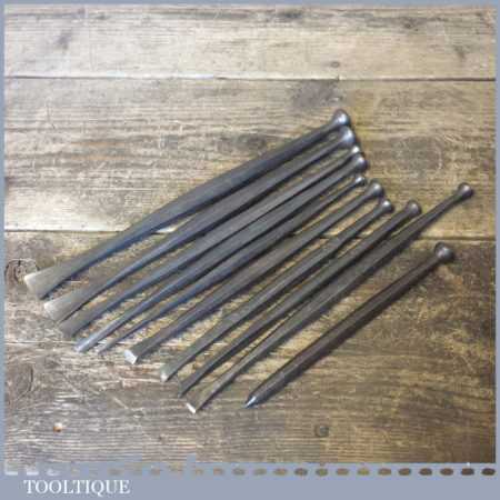 Old vintage set of 10 No: stone mason’s or sculpture’s chisels in good used condition.
