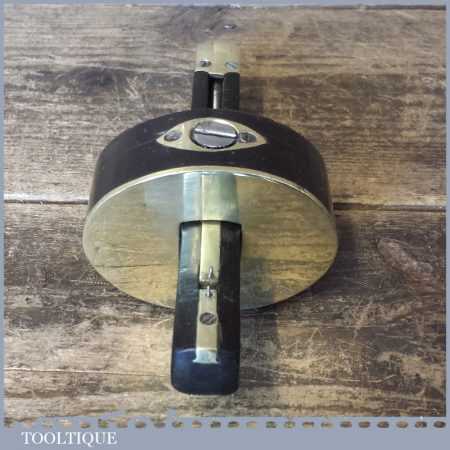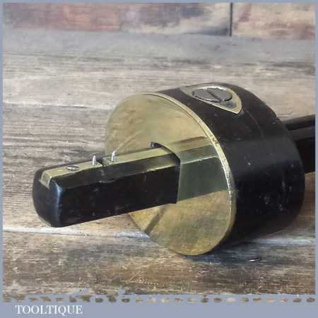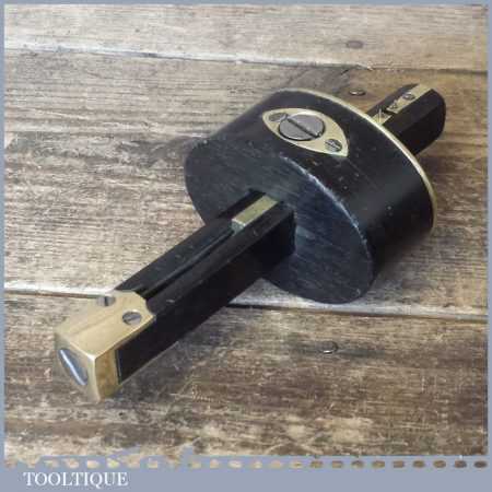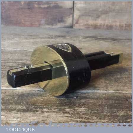 Unusual vintage Ebony and brass mortice gauge in good used condition which adjusts and moves freely. Note: The hole for the arm isn’t a tight fit like you would expect to see but it tightens up and works fine, it was probably altered as these can get a bit tight