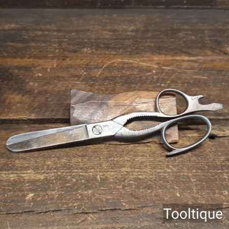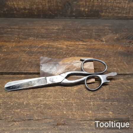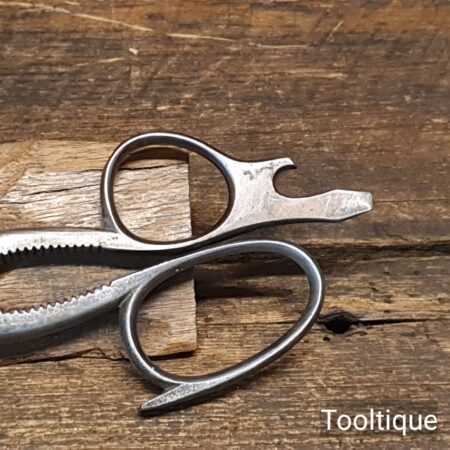 Unusual vintage Harrison fisher and Co. ltd combination scissors, sharpened and ready for use. Includes a screwdriver, bottle opener and grips in good used condition.