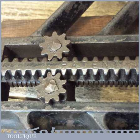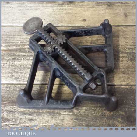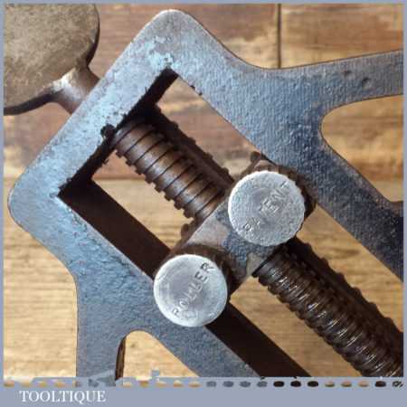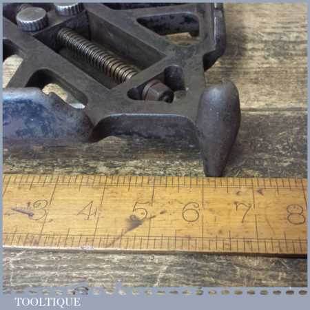 Unusual vintage Hughes Bros. Liverpool, cast steel mitre or corner clamp with patented rollers and elaborate gearing in good used condition.