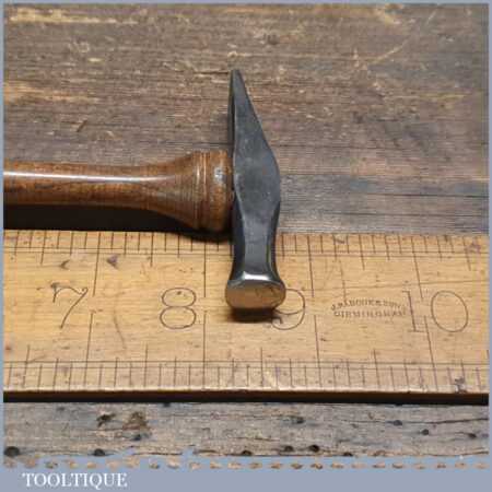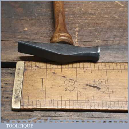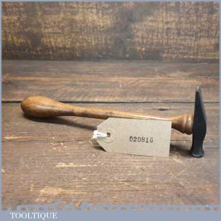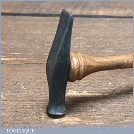 Unusual vintage Jewellers cross pein hammer with bulbous wooden handle, in good used condition.
