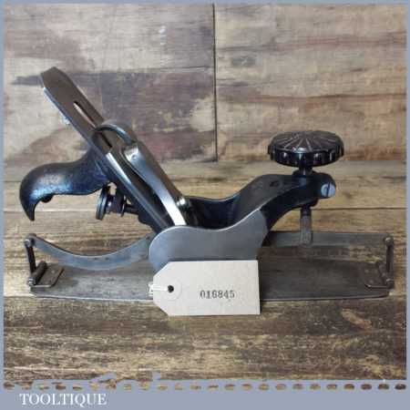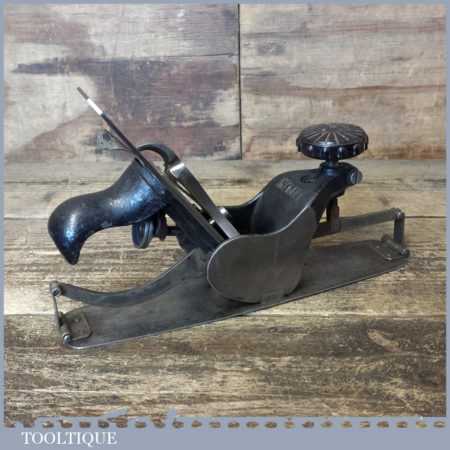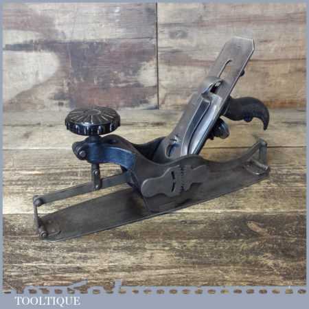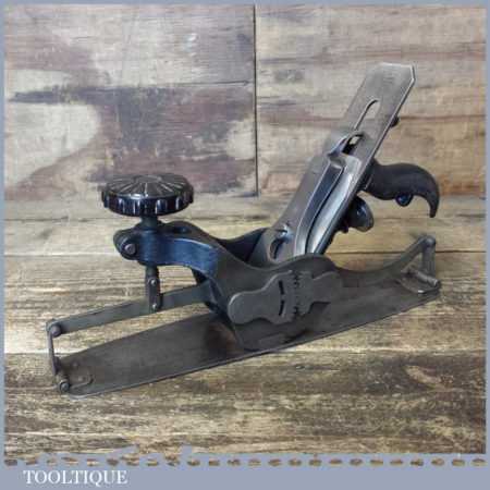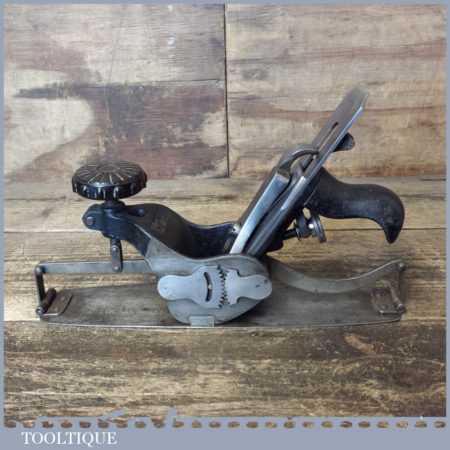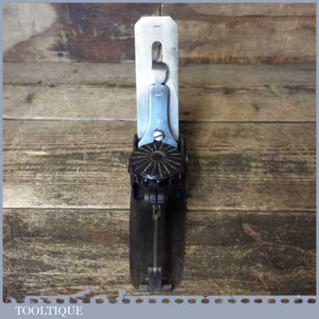 Unusual vintage No: 113 circular compass plane, fully refurbished and sharpened ready for use and in good used condition. All the components have been thoroughly cleaned and move freely. I have to say I’ve never seen one of these before so cannot attribute a maker but wonder if the iron is an import replacement added later. Date wise the front knob is Bakelite so probably could be as the from 1950’s