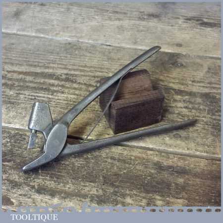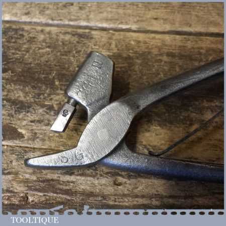 Unusual vintage pair of spring loaded pliers possibly used for leatherworking but has a curved attachment marked with the number 5