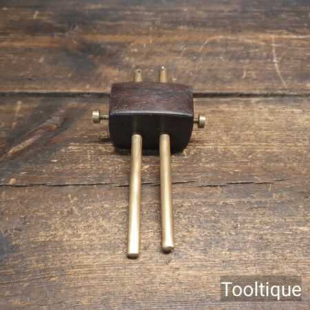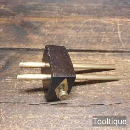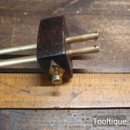 Unusual vintage rosewood and brass mortice gauge with dual brass rods in good used condition.