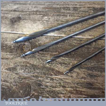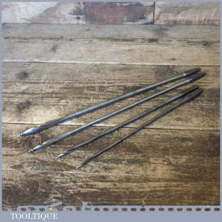 Unusual vintage selection of 4 No: assorted extra long twist gimlet bits for a brace in good used condition.