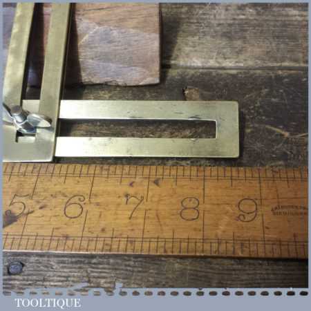 Unusual vintage solid brass sliding bevel with 8 ½” blade, in good used condition.