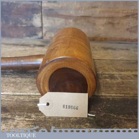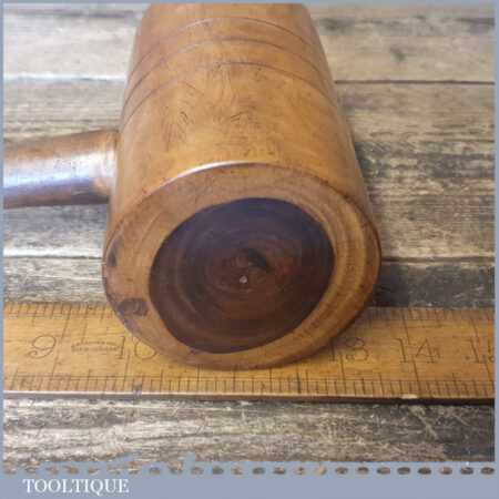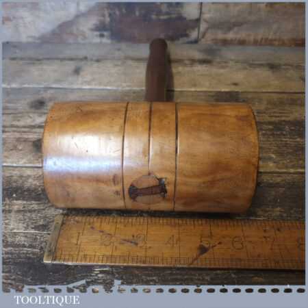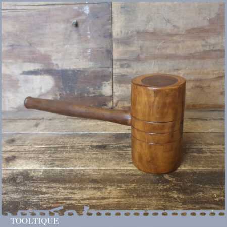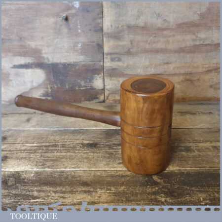 Unusual handmade wood turned old lignum mallet with a beechwood handle and ebony wedge in good used condition. This mallet is approximately 2.5 lbs in weight and is finished with bee’s wax.