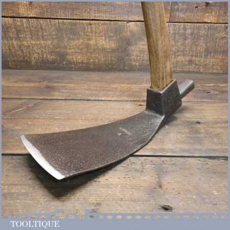Unusually large vintage Charlton Ltd. carpenter’s adze with 34″ hickory handle, in good used condition, fully refurbished, sharpened and honed ready for use. The adze face has been smoothed off and sharpened (water cooled) to ensure it creates a good cutting edge and can be sharpened again with ease.
