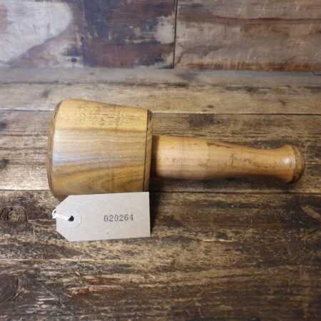 Used handmade wood turned lignum mallet with beechwood handle and wedge. This mallet is approximately 1lb in weight and is finished with bee’s wax.