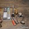 We sell collectable and old usable tools that are lightly cleaned before being offered for sale. Used tools are not perfect and may have minor flaws due to wear and tear. Any major defects will be pointed out in the description. All items are sold in an “as is” condition and have not been tested; some reconditioning may be required according to buyer’s standards which can vary wildly. Whilst best reasonable efforts are made to ensure usable items are brought to a good standard, those expecting perfection from used tools should consider buying new ones. Items described as ‘Antique’ or ‘Collectable’ are not sold for the purpose of use, if the buyer uses them we regard the item as sold or intends to use them it is their responsibility for additional costs to upgrade. If in doubt please ask as we are more than happy to help.