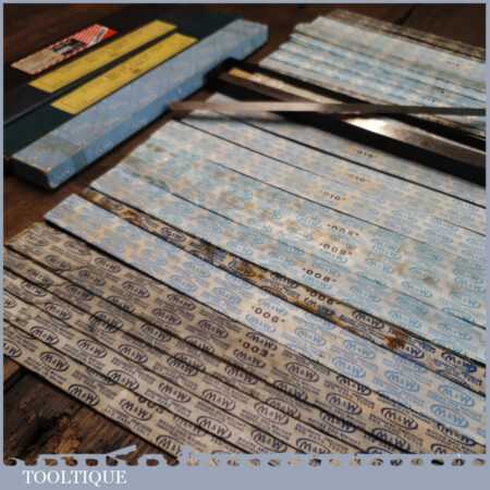 Variety of vintage of feeler gauge strips by Moore & Wright, Jilton etc. most in in unused condition. There are roughly 30 No: in total.