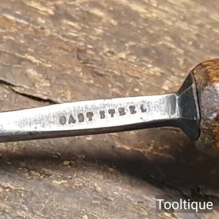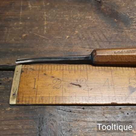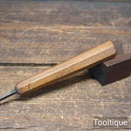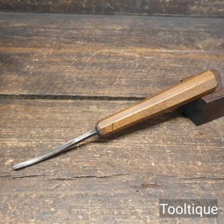 Vintage ³⁄₁₆” Moulson Brothers curved veiner woodcarving gouge chisel with an octagonal beechwood handle in good used condition, fully refurbished sharpened and honed ready for use.