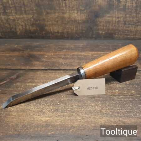 The chisel has been checked to ensure the tang is seated properly and the handle is solid and fit for use. All refurbished chisels are water cooled during the sharpening process to ensure the tempering is not affected.