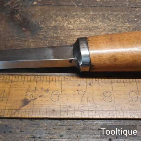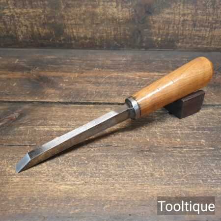 Vintage Carpenter’s ¹⁷⁄₃₂” cast steel mortice chisel with a beechwood handle in good used condition, fully refurbished sharpened and honed ready for use.
