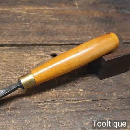The chisel has been checked to ensure the tang is seated properly and the handle is solid and fit for use. All refurbished chisels are water-cooled during the sharpening process to ensure the tempering is not affected.