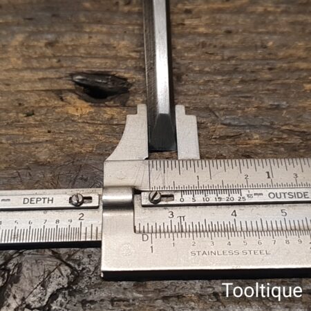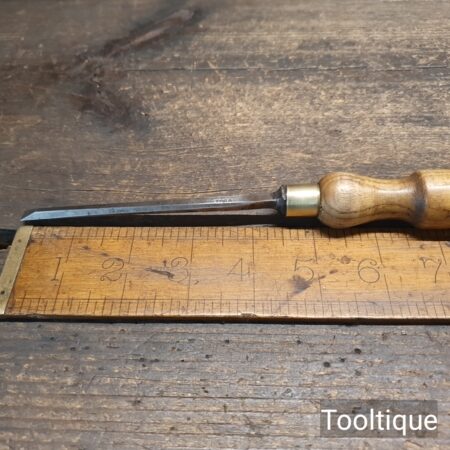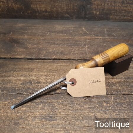Vintage ¼” Buck & Ryan Toga Brand Bevel Edge Chisel with an Ashwood Handle, refurbished ready for use and in good used condition. All refurbished chisels are water cooled during the sharpening & flattening process to ensure the tempering is not affected.
